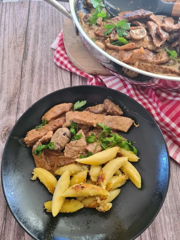 Das Zürcher Geschnetzelte ist schnell zubereitet und schmeckt als Beilage Röstis, Schupfnudeln aber auch Reis oder Kartoffeln. Dazu ein frischer Salat und Du hast im Handumdrehen eine köstliche Mahlzeit gezaubert.